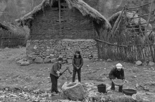 2013年1月25日拍摄于甘肃省礼县上坪乡唐王村。每到过年时节,当地村民以燕麦为主,自酿自用的酒,但须加工 (把燕麦的皮用杆臼捣掉)。酿造时,先煮熟酒料,然后凉成沙温的,加入甜酒曲搅拌均匀装盆即可。