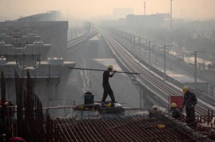 高铁每一座墩身经卫星定位,墩身间的高低误差不能超过5毫米,建设者在墩身上浇筑垫石缩小误差。