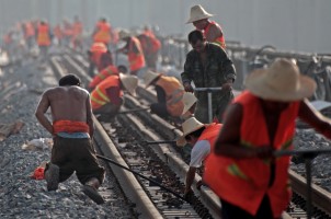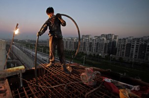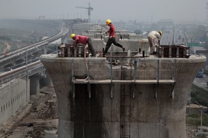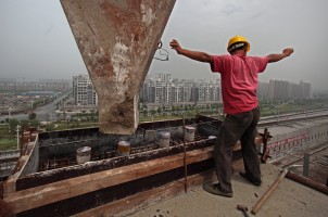 清晨,来自陕西平利的王兴才一夜未睡,正在浇筑沪杭高铁线上最后一座墩身。