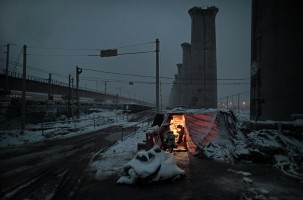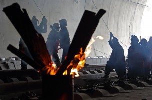 一场雪延误了工期,负责管理设备的河南建设者叶跃跃守候在工棚里。