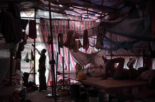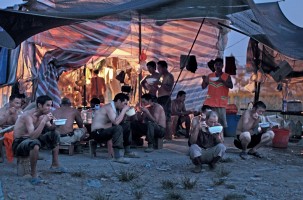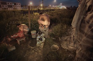 工地没有专门的淋浴卫生间,洗漱都在工棚井边,饮用水要到1公里外去拉。