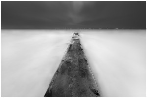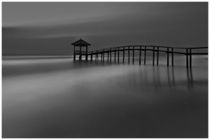 无数次倘佯在大海边,无数次眺望碧水蓝天,海天一色,大海的广阔博大让我惊叹!像一道闪电划过心头:我不禁想到人们常把大海比作母亲,就是说大海有慈母般的温柔,人们常说海纳百川,就是说大海有伟大的包容心。大海不仅汹涌澎湃,也有温柔恬静;不仅变幻莫测,也有情深意切;不仅雄浑奔放,也有轻纱漫舞,用镜头展现大海的这一面,才能更好的赞美大海,讴歌大海,把一个完美的大海呈现给人们。于是,我用大广角、大慢门来拍摄海水,使海水似云似雾,柔美文静。为了更好地烘托出照片的艺术效果,有选择的将岸边的景物入画,同时注意天空中云彩的细节表现。这样拍出的照片,整个画面极为简洁,海面广阔辽远,水平如镜,水细如纱,不仅空灵之美跃然而出,也拍出了大海的广阔无垠,慈母般的海纳百川的胸怀。