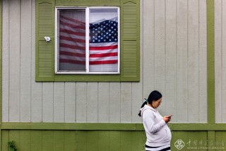 美国旧金山,一个中国孕妇在居住的月子中心附近散步。