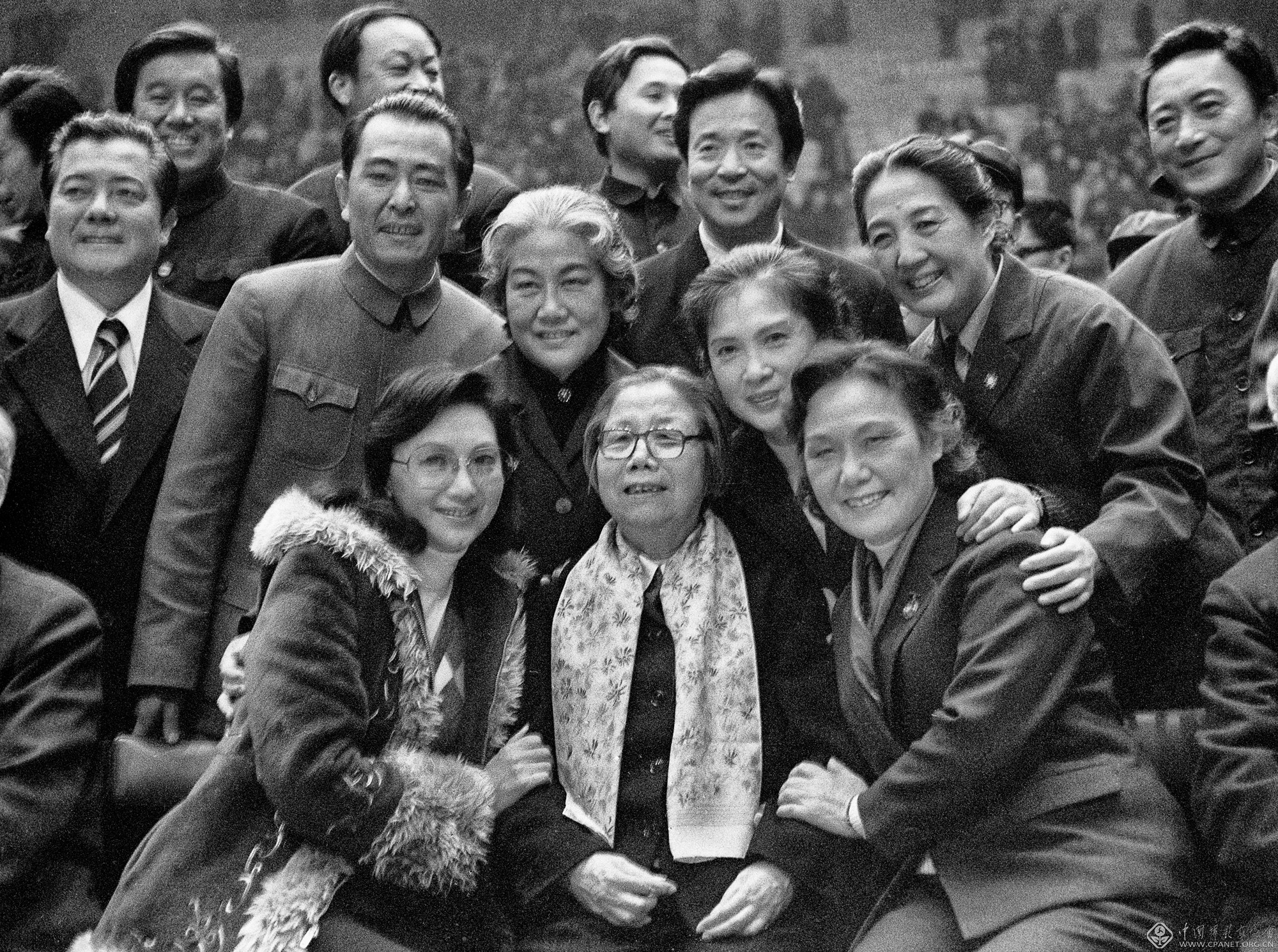 胡颖 中国当代文化名人之一 邓颖超与艺术家 1979年11月 北京 前排右一白杨、左一夏梦,二排右一朱琳、右二秦怡、右三张瑞芳,三排右一孙道临、右二李光曦、右三王铁成、右四温可铮