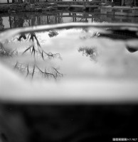 诚然,如今作为旅游目的地的园林,早已不是数百年前初建的样子,历经损毁和修复——哪怕是根据史料尽力再现,其楼阁亭台,乃至一石一木,恐怕也不是人们心目中“原真的”(authentic)古迹。然而,哪怕在布局、植被、名称、所有权方面不断发生变化,有一种园林精魂却始终挥之不去,即,无论历史如何变迁,只要人类对于死亡的恐惧和对超越死亡的渴望不曾改变,园林在核心本质层面总是一脉相承的。让目光透过物质的、现实的世界,去搜寻隐匿其中的另一个时空。当阳光照到水中央的一簇植物,或者暮光将逝,或者一尾鲤鱼在稍纵即逝……在这样的时刻,分隔两个世界的帷幕突然撩开,那个隐秘的仙境浮现在眼前,甚至可以被铭刻在底片上。哪怕它同我们的渴望一样无法抵达,但若能在一瞥之中确认这个仙境的存在,或许也可以获得身在其中一般的慰籍和喜悦。