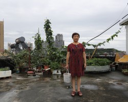 李奶奶:72岁,原点军区农民。几年前患病跟随女儿到城区治病,在宿舍楼顶种菜三年多,可满足一家人的食用。