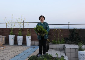 李女士,70岁,家庭妇女,当阳市人。老伴儿去世后,随儿女到宜昌生活,在女儿楼顶的花坛里种菜六年,可供儿子、女儿两家人一家人食用。
