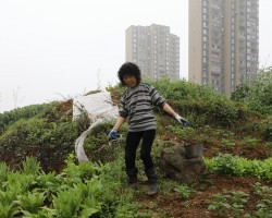 潘师傅,66岁,水电工程技术员退休,原武汉市人。1983年大学毕业分配到宜昌做水电工程,一儿一女均在外地工作,现给儿媳带孙子,孙子送幼儿园后在小区前待开发的山坡上开垦了许多荒地种菜,收获的蔬菜自己吃,还晾干了储备过冬。