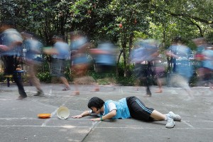 “在柜子打灯写作业,在楼道借灯写作业,在被子里写作业,在厕所蹲着写作业,在凌晨四点写作业,在门背后角落写作业,简直就是和宿管阿姨斗智斗勇的高中。”这是我着手拍摄高中生这一专题前,为搜集素材在知乎中查看高中主题 “你的高三都经历了什么?”问题中的一个回答,也是当下中国许许多多个处于沉重高考压力下高中生生活的一个缩影。