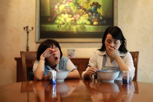 2014年9月15日,妈妈每天早上530起床为我准备早餐,6点钟把我喊醒,然后两个人迷迷瞪瞪坐在餐桌前吃早餐,昨晚写作业又晚了,我张大嘴打吹欠同时发现妈妈也在打吹欠,妈妈太辛苦了,起那么早做早餐,黑眼圈都出来了。