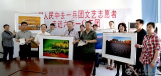 兵团文联领导率摄影、书法志愿者向六师五家渠市103团赠送摄影作品。