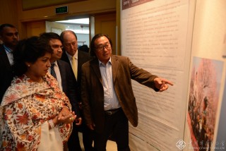 2016年7月,新疆风情摄影展赴毛里求斯展出,中国摄影家协会副主席、新疆文联副主席、新疆摄影家协会主席李学亮向毛里求斯总统介绍展览情况。