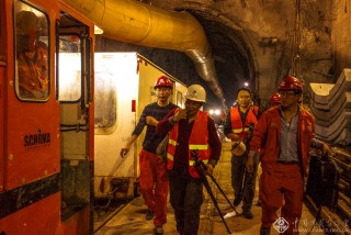 中国水利摄影家协会摄影家拍摄引汉济渭工程,穿秦隧洞工作条件极其艰苦。