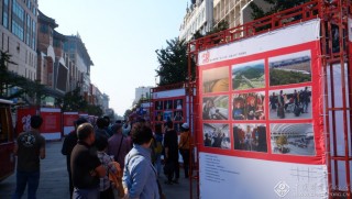 2015年9月27日,《向人民汇报》摄影展在王府井、西单展出。图中展出的是中国铁路摄协主席原瑞伦创作的高铁摄影作品。
