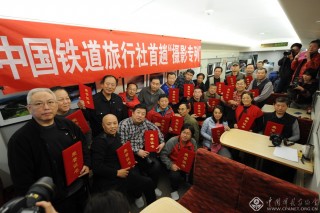 2015年12月,呼伦贝尔冰雪摄影专列获奖者合影。