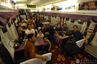 铁路摄影家送文化活动到车厢,图为正在聆听摄影讲座的基层摄影爱好者。