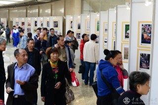 自2013年开始,中国通信摄影协会连续4年成功举办北京国际摄影周“云影像”大众手机摄影活动,图为观众在北京世纪坛北京国际摄影周参观手机摄影展。