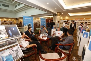 8月31日傍晚,中国摄协第九次全国代表大会代表团团长和各组召集人会议召开前,代表们在会议室外的“影像与阅读”区域交流讨论。陈黎明 摄