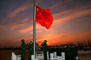 沐浴着祖国第一缕阳光,官兵心中倍感神圣和自豪。(记者穆可双摄于2016年2月)