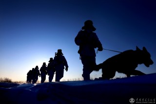 官兵踏着清晨第一缕阳光巡逻在祖国的边境线上。 (记者穆可双摄于2016年2月)