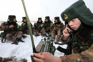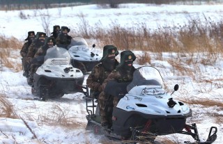 官兵驾驶摩托雪橇在风雪边关巡逻执勤。(记者穆可双摄于2016年2月)