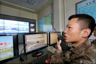 连队利用信息化视频监控系统进行边境封控演练。(记者穆可双摄于2016年2月)