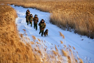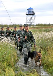 官兵在风景如画的黑瞎子岛上巡逻执勤。(记者穆可双摄于2009年1月3日)