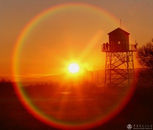官兵在连队第一代哨塔上执勤,把太阳迎进祖国。(摄于2009年1月)