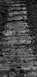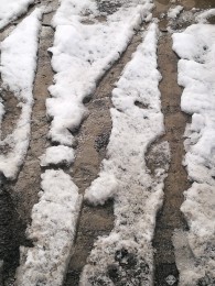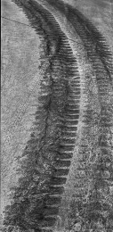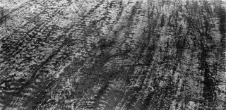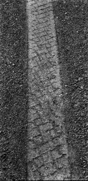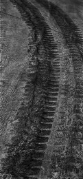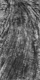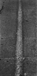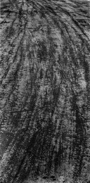 萧瑟的冬天来临,在高速警示牌的减速带数百米之前,会有多道橡胶轮胎由于紧急刹车而留下的黑色印迹。高速路上一个方向行驶的车辆使它不同于乡间小路重复往返的印痕,它前宽后窄的摩擦痕迹赋予了它勇往直前的意思。高速路上有变道驶入终关方向留下的车辙痕迹,也有即将发生危险急换s形的……这大概就是现代物质文明的车辙记忆与客观呈现。