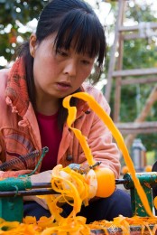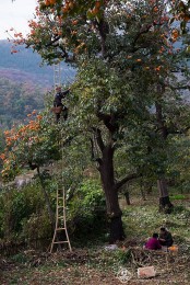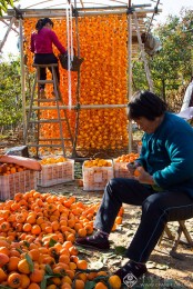 2017年10月24日,霜降节气过后,正值柿子丰收季节,在山东青州市王坟镇满山遍野的柿子挂满枝头。在山坡、路边、沟沿、地头,到处是忙着采摘柿子的果农。在农家场院里、房顶上、屋檐下,排列着一个个晾晒柿子的架子,那一串串去了皮的柿子红彤彤的犹如悬挂着的灯笼,放眼望去一派丰收的景象,为柿乡的秋天增添了绚丽的色彩。