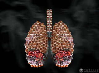 画面中,香烟组成了人类肺部的形状,而其中部分已被点燃,渐成灰烬。这寓意着吸烟就是在消耗着我们的生命,健康将像香烟燃尽一样随之消失。