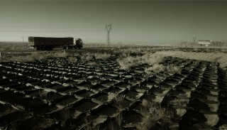 这一组《天蚀》系列影像———景物志。画面相对静止、平淡,很少有人物的出现,只剩下人类活动的产物。