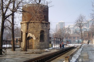 1-1.西直门水塔建于1918年,用于给西直门机车房内的蒸汽机车给水,2005年,除两侧水鹤被拆除,与建成时差别不大。_