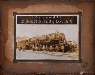 5-1.马莱 4 型机车的车体非常庞大,机车前部的低压气缸特别比人都高。这张1928年照片恰好记录了“京绥”改“平绥”之前的机车状态,也记录了 4 座车库门的康庄新机车房。_