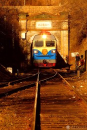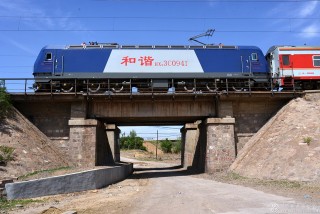 7-2.K3 次国际列车驶入八达岭隧道,图中的机车为列尾的补机。 _