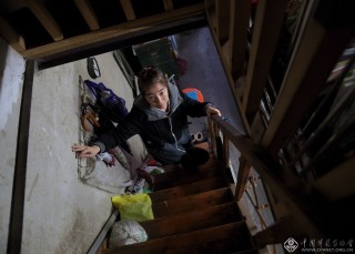 住在车库里的父女 李广庆 晓晖平时就睡着车库的二层阁楼上,父亲病重后就很少上楼了,常常坐在凳子上陪伴睡不着觉的父亲。