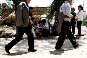 2013年7月22日,傍晚时分,记者在一处高土台上,看到有不少受灾的孤儿寡母,当时还不知道其中的三个三个孩子成了孤儿。