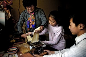北京,岷县的孩子都爱吃面条,孩子们教郝妈妈压面条。