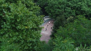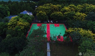 2017年9月10日,武汉市汉口后襄河公园内,市民在树林中打篮球健身。