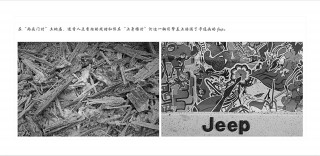 在“两头门村”土地庙,进香人点香烛的残蜡和停在“上身塘村”河边一辆引擎盖上贴满了卡通画的Jeep。