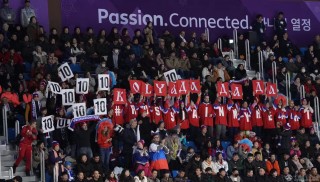 2月10日,南北韩领导人与奥委员会主席及北韩啦啦队。王身敦
