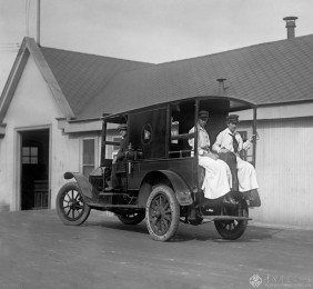 1915年在纽约市工作的救护车外科医生Cornelia Meaders和Alice Lewis