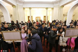 2018年3月1日,2018年全国两会即将召开,在人民大会堂,记者排队领取记者证。据悉,十三届全国人大一次会议和全国政协十三届一次会议将分别于3月5日和3月3日在北京开幕。