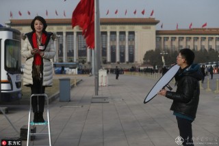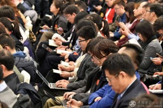 2018年3月4日,十三届全国人大一次会议新闻发布会举行,大会发言人张业遂回答中外记者提问。上会女记者开始进入“两会状态”。