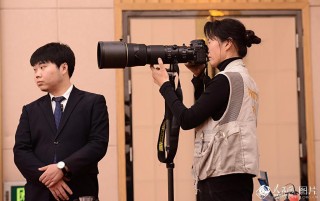 十三届全国人大一次会议新闻中心于3月7日15时在梅地亚中心多功能厅举行记者会,邀请扶贫办主任刘永富就“打好精准脱贫攻坚战”的相关问题回答中外记者的提问。扛着两台相机的女记者