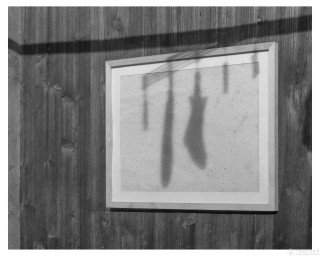 《影子意韵之农家》:在阳光下,影子无处不在,它是存在物的反证。当我把它收集到画框上时,它仿佛就是物件本身。这让我想到中国水墨绘画中的写意手法,没有光线感,没有细节,却还是让人一目了然其符号意义。这是一组对绘画语言的模仿作品。