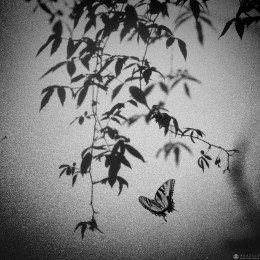 《影子意韵之蝶梦》:自然界的影子与农家用品的影子相比,有了虚实层次,更接近水墨画浓淡变化的效果,产生了传统美学中的意境氛围,这让我突发异想:我们的古人是不是受了影子的启发而创造了水墨画。这组作品,我借用庄周梦蝶的逻辑,来思考是影子启发了水墨画的创造,还是水墨画启发了影子摄影的出现。