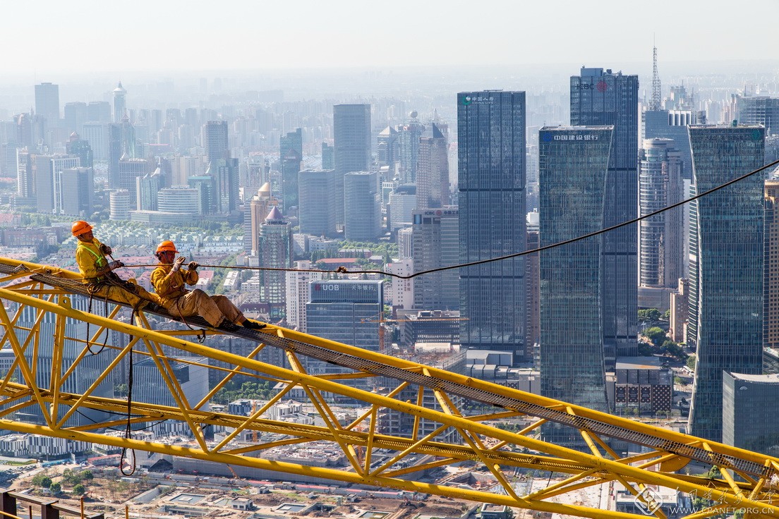 280.2米高空作业-雷鸿 摄- 2015年12月19日,国家电网公司的电力工人在“宁夏灵州——浙江绍兴”±800千伏特高压直流输电工程280_.2米高的安徽省池州乌沙镇长江大跨越标段上施工作业。