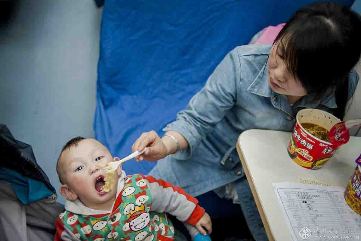 邹苏斌——《暑运“小候鸟”》——作品阐释: 2010年暑期,拍摄于一列江西开往江苏的绿皮火车上。这位年轻妇女趁暑假带着自己的两个孩子去探望在外务工的丈夫,同时,受乡亲之托也带上他们的孩子一同前往。