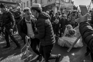 许勇——《街头2》——作品阐释: 我生活在四川一个小县城里,两三个小时就可以把城中心大部分街道走一遍。我利用周末和假期拍这里形形色色的人们,拍所有触动我的瞬间。这组照片在编排上进行了设计,两张为一组,前一张是人物,后一张是静物,两者互相关联,有些很直接,有些则需要观者进行想象。